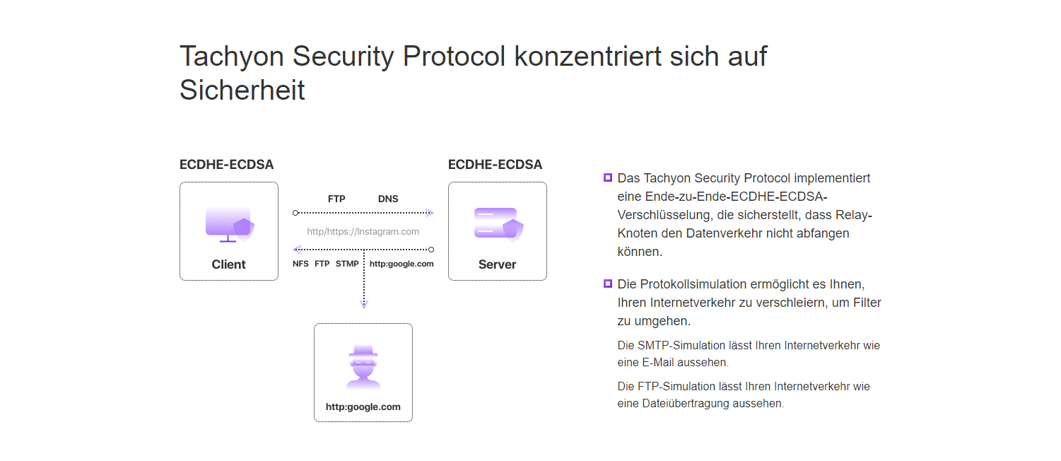 Das Tachyon-Netzwerk bzw. Protokoll und der resultierende VPN-Dienst befinden sich noch in einer Testphase!!