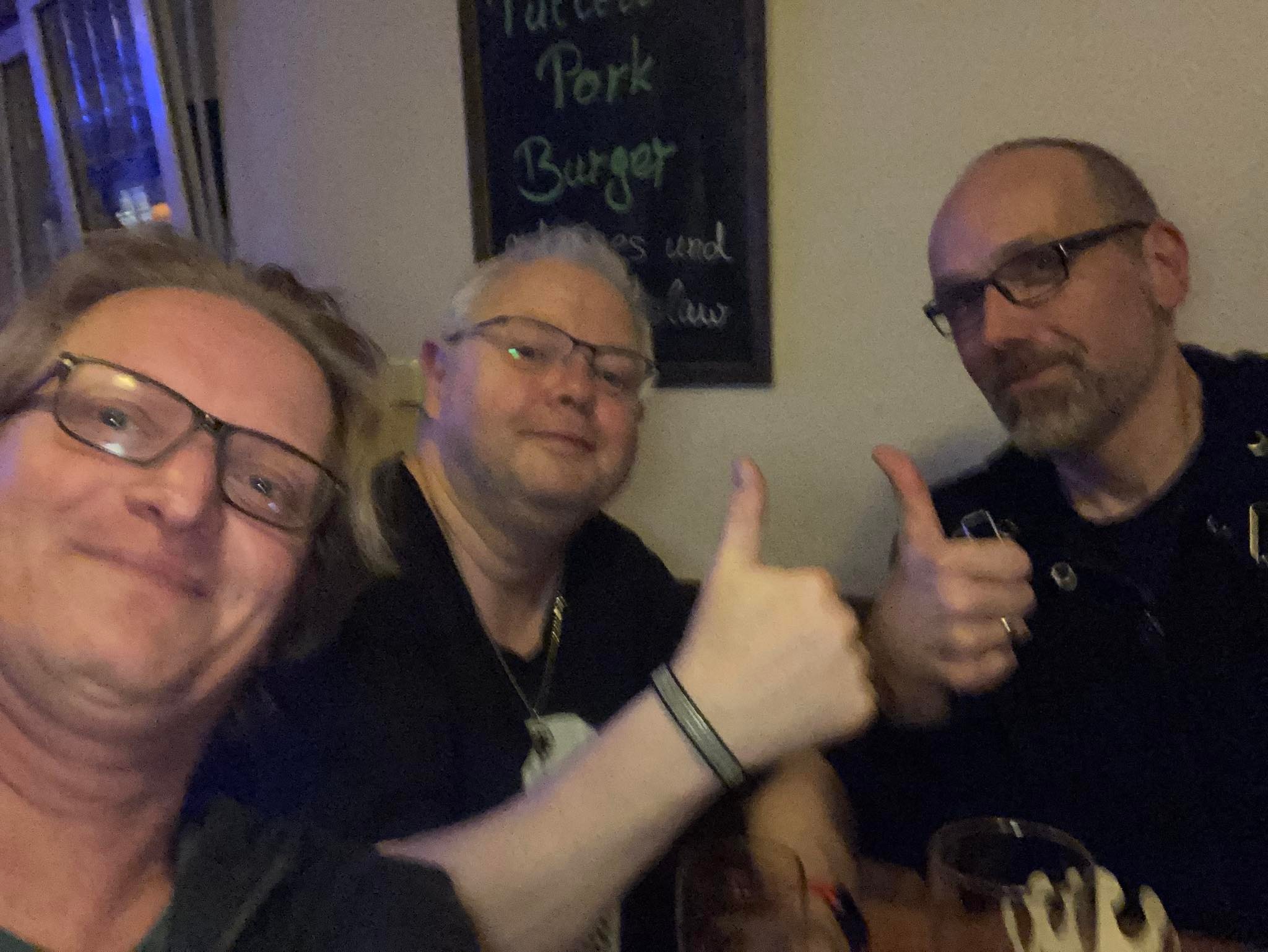 Bereit für die Larsreise, ähhh Abreise. Essen war im Pub und hier im Pizzaladen super. Getränke auch. Faktor wieder drinne!