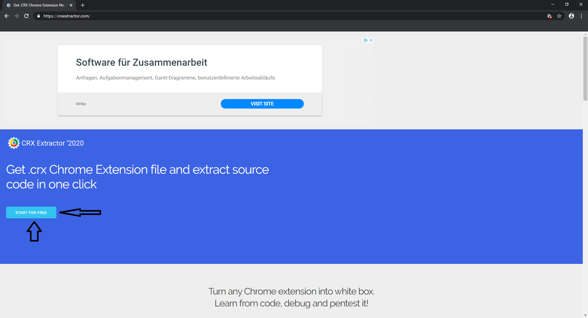 Klick auf Start for Free. Dan fügt ihr den Ublock Origin Link vom Chrome Webstore hinein, https://chrome.google.com/webstore/detail/ublock-origin/cjpalhdlnbpafiamejdnhcphjbkeiagm und dann Klickt ihr auf Download, dann Klickt ihr GET .CRX drauf.