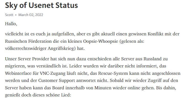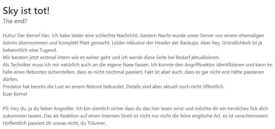 einige von Sky sind auf UsenetDE Discord vertreten. Ob der offen ist weiß ich aber nicht