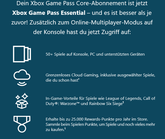 Das frühere XBox Gold, welches dann in XBox Core umbenannt wurde, hat nun wieder einen neuen Namen (XBox Game Pass Essential) und wurde Funktional ziemlich erweitert.