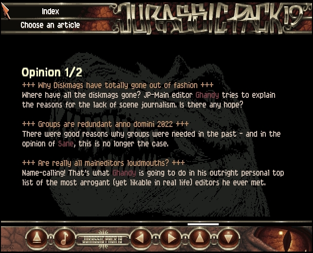 When you look at the writing of some authors, you get scared. Their lines are full of arrogance and have one primary aim: to stimulate their ego. In the early 90s I was an avid reader of RAW. If there was a scandal, it was there. Everyone within the scene exchanged information about what was new in that diskmag. Oh those glory days!