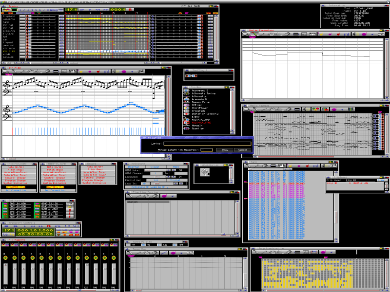 The AMIGA OS version of BarsnPipes has the highest amount of tools and accessories and so the best functionality. My handicap at the moment is that the mainboard of my main AMIGA (A1200 68040/40 – towered with ZorroII – Gfx-card – Soundcard – MultiIO-card) is broken. So I can only work on my desktop A1200, which has a defective serial-port… no MIDI possible. As I am already retired, I have not got very much money available. So I don’t know, when I will be able to repair my main AMIGA.