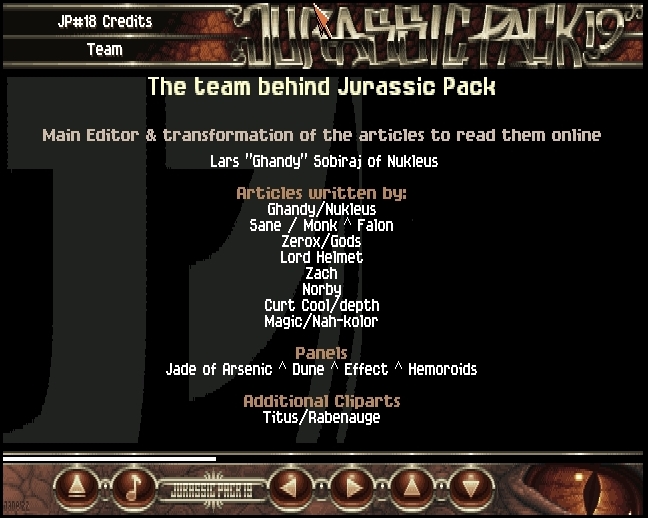 If you would like to contribute to the next issue of CnS or Jurassic Pack, please send an email to jp@moodsplateau.net. Everything is welcome – articles, cliparts, start- and endpics, panels, music! Please send pictures along with your articles.