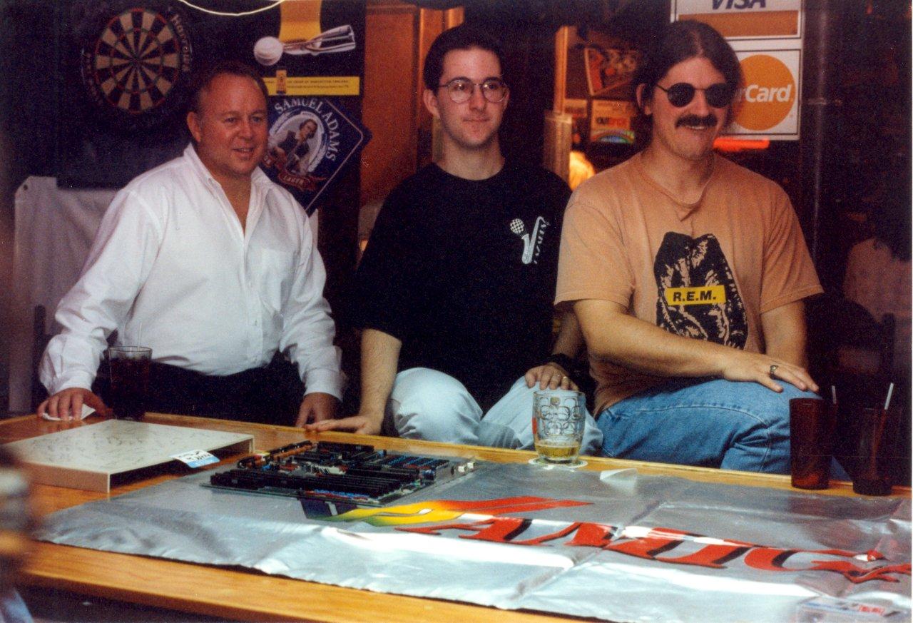 At the article image on top you can see the following people. Left to right: Fred Fish, Jason Compton and Dave Haynie. The picture was shot in the middle of the 90s. Photo by Arxaaron, thx! (CC BY-SA 3.0)