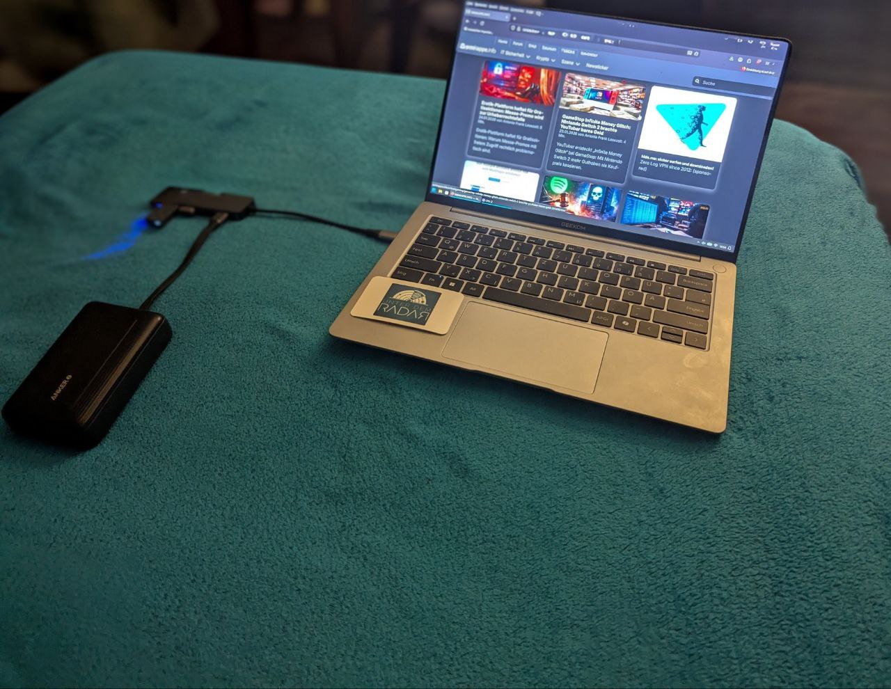 Und weil Power Delivery sauber läuft, klappt das auch mit einer PD-Powerbank, in meinem Fall auch von Anker, mit der ich den Laptop mit einer 20.000-mAh-Powerbank mit 20 W laden konnte. Ich finde es toll, dass es funktioniert, da viele Geräte trotz angegebener Spezifikationen nicht kompatibel sind. Natürlich saugt es die Powerbank schnell leer, aber im Notfall ist das wirklich verdammt praktisch. Dass was Apple mit seinen Laptops macht, kann auch das Gerät von GEEKOM, nur fühlt es sich irgendwie noch stylischer an. Vom Preisunterschied zu den tragbaren Apple-Geräten wollen wir besser gar nicht erst anfangen…